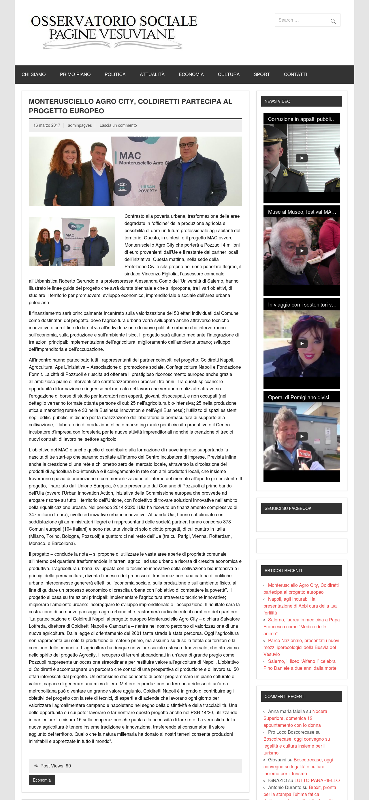 20170306 (cronacaflegrea.it) Pozzuoli/ Parte il progetto Monterusciello Agro City (MAC) finanziato dalla UE